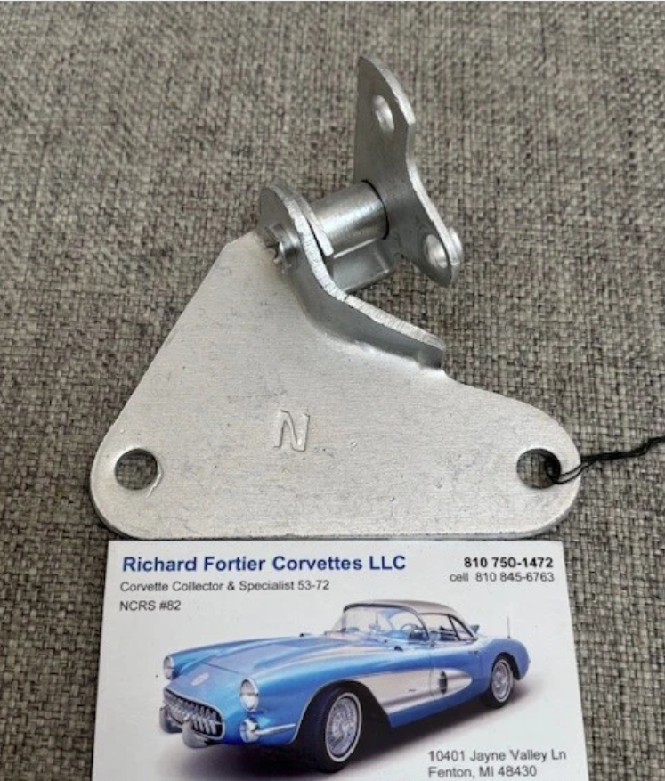 1956-57 Corvette Auto Trans Kick Down Bellcrank Assy. Restored Orig. Use with Corvettes having 1×4 and Powerglide. Has mfg. logo “N” as original. Mounts to aluminum intake manifold using WB1C bolts. GM# 3711507 and 3713739.